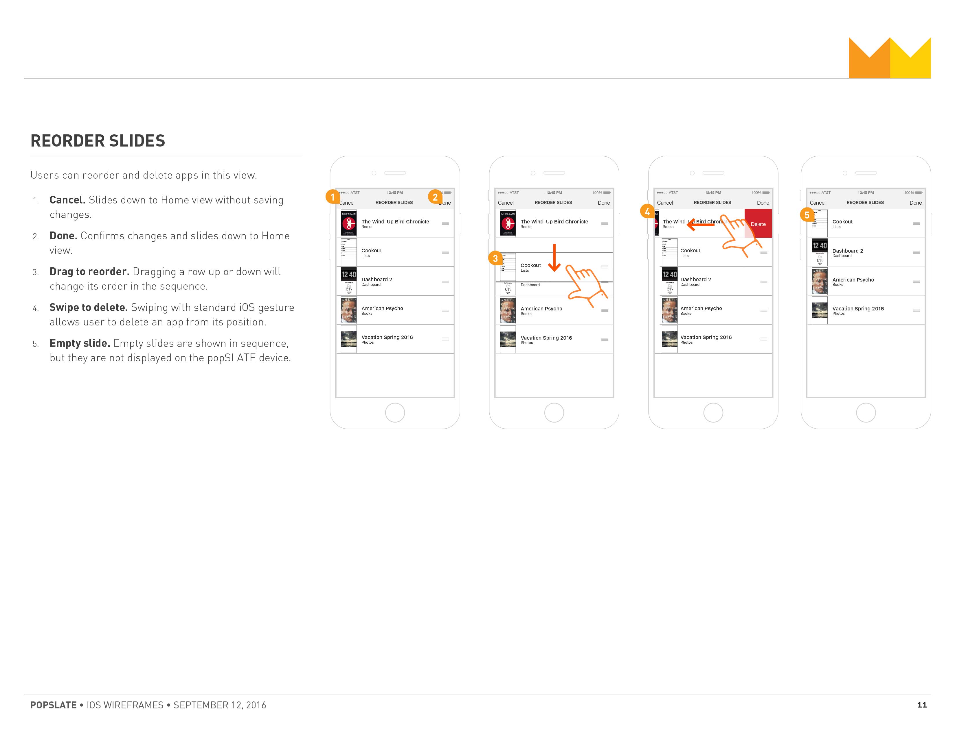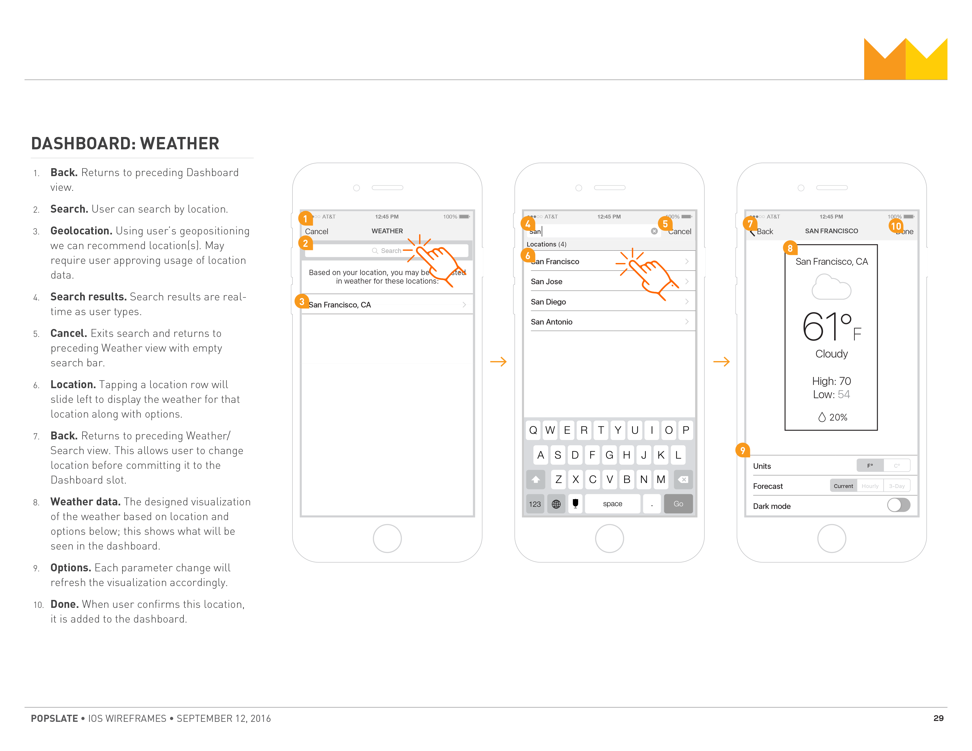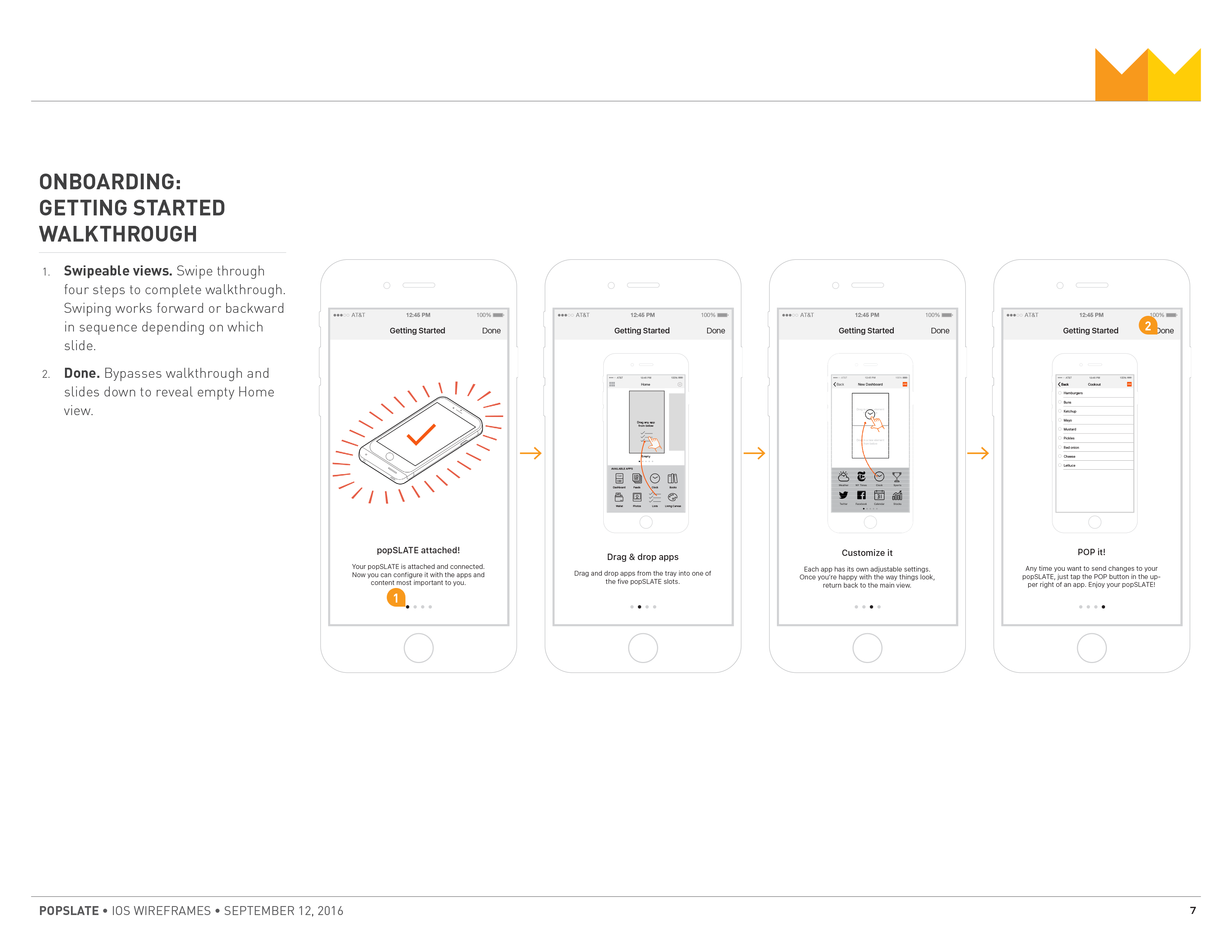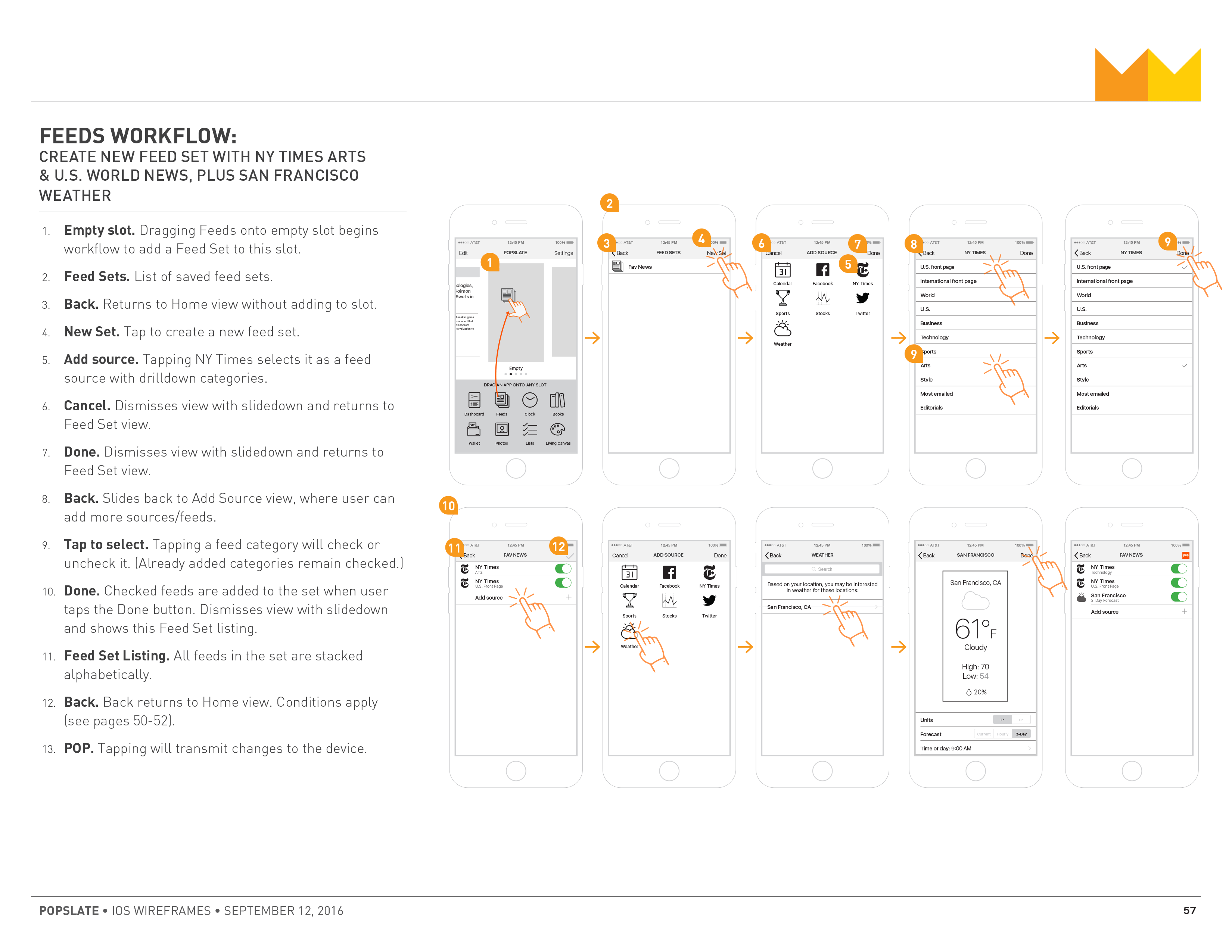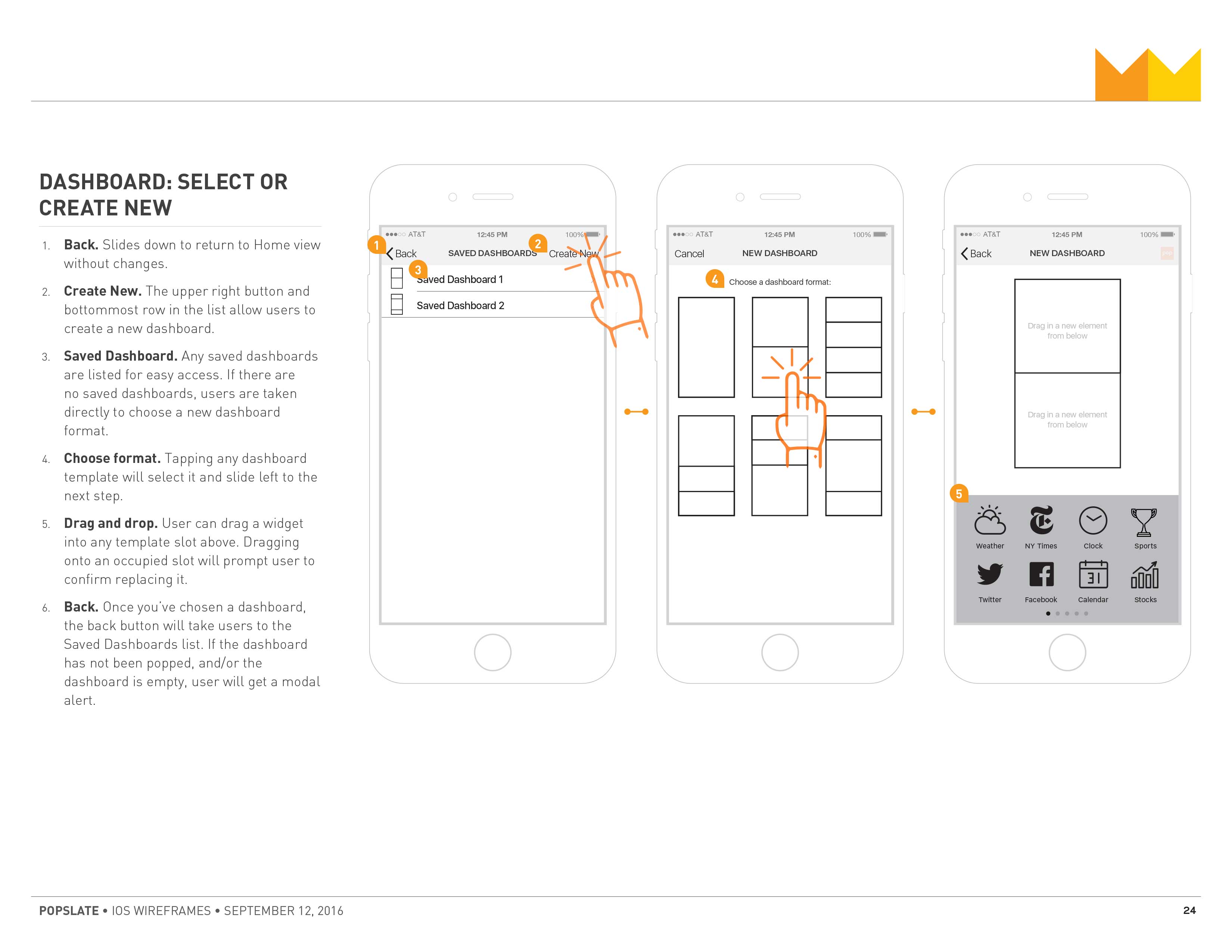 The final deliverable document for the popSLATE 2 app included numerous use cases and workflows for various conditions. It covered the user experience for the app itself as well as 8 applets within and a series of dashboard widgets.