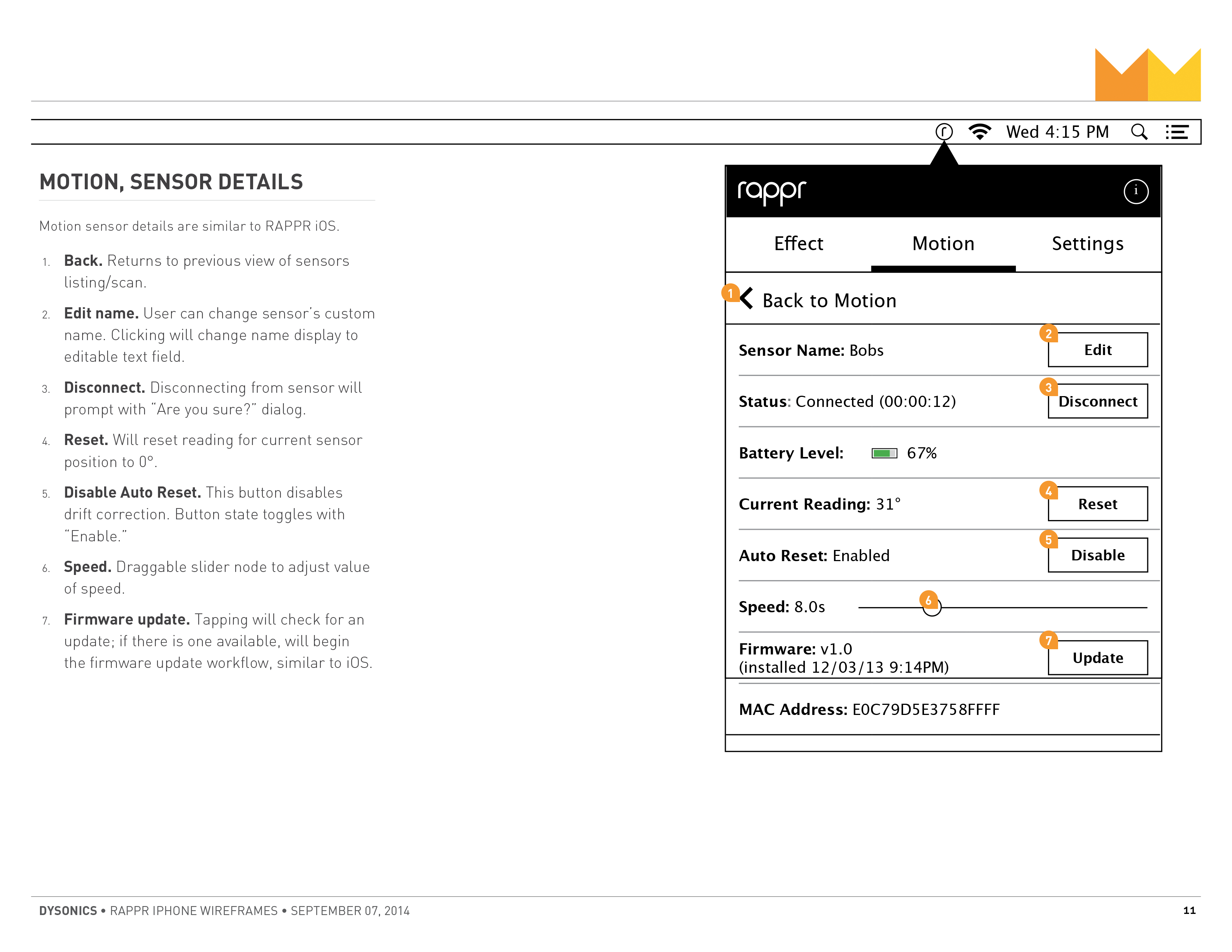 RAPPR’s name evolved from an early acronym (Real-time Audio Processing Platform), and it’s a MacOS desktop accessory that applies audio spatialization system-wide. At a minimum, it allows users to apply room ambience and depth to all onboard sound. When used in conjunction with Dysonics’ Bluetooth hardware sensor, which attaches to any over-ear headphones, it applies real-time spatialization to audio, resulting in a pinned sound source relative to the user’s head position. The resulting audio is surprisingly lifelike and can cause listeners to forget they’re using headphones at all; instead of the piped-in effect of headphones stereo, sound suddenly feels like it’s coming from a localized, open-air source in the room.